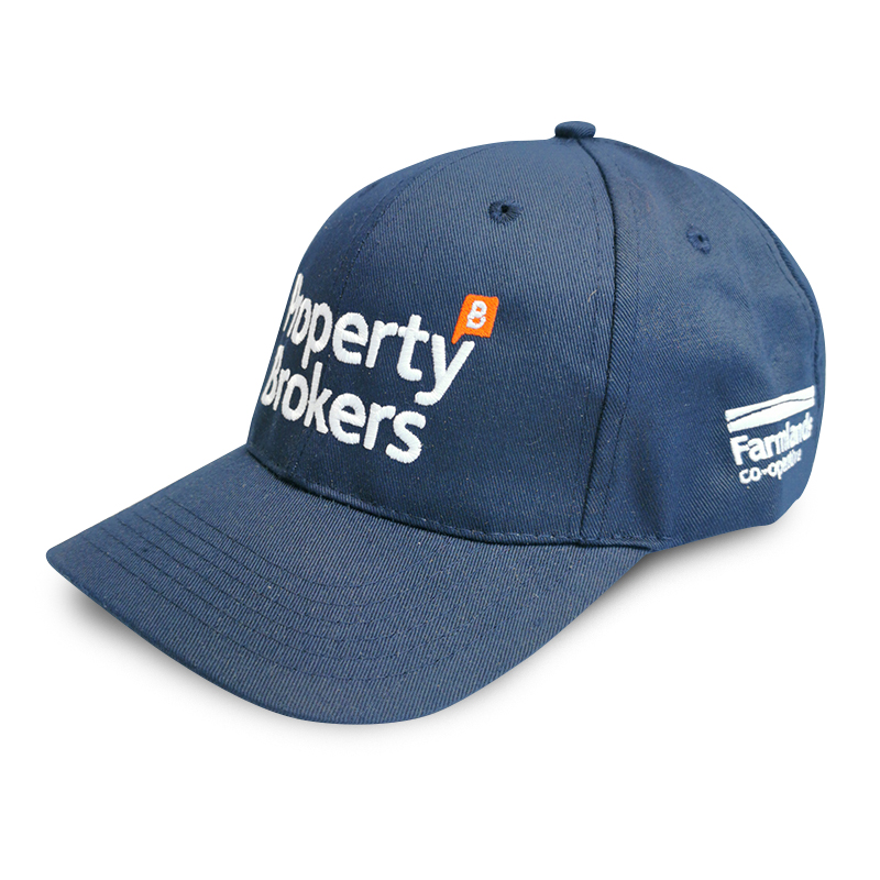 ECO cap. 100% Recycled polyester. Full colour Property Brokers and Farmlands logo.
