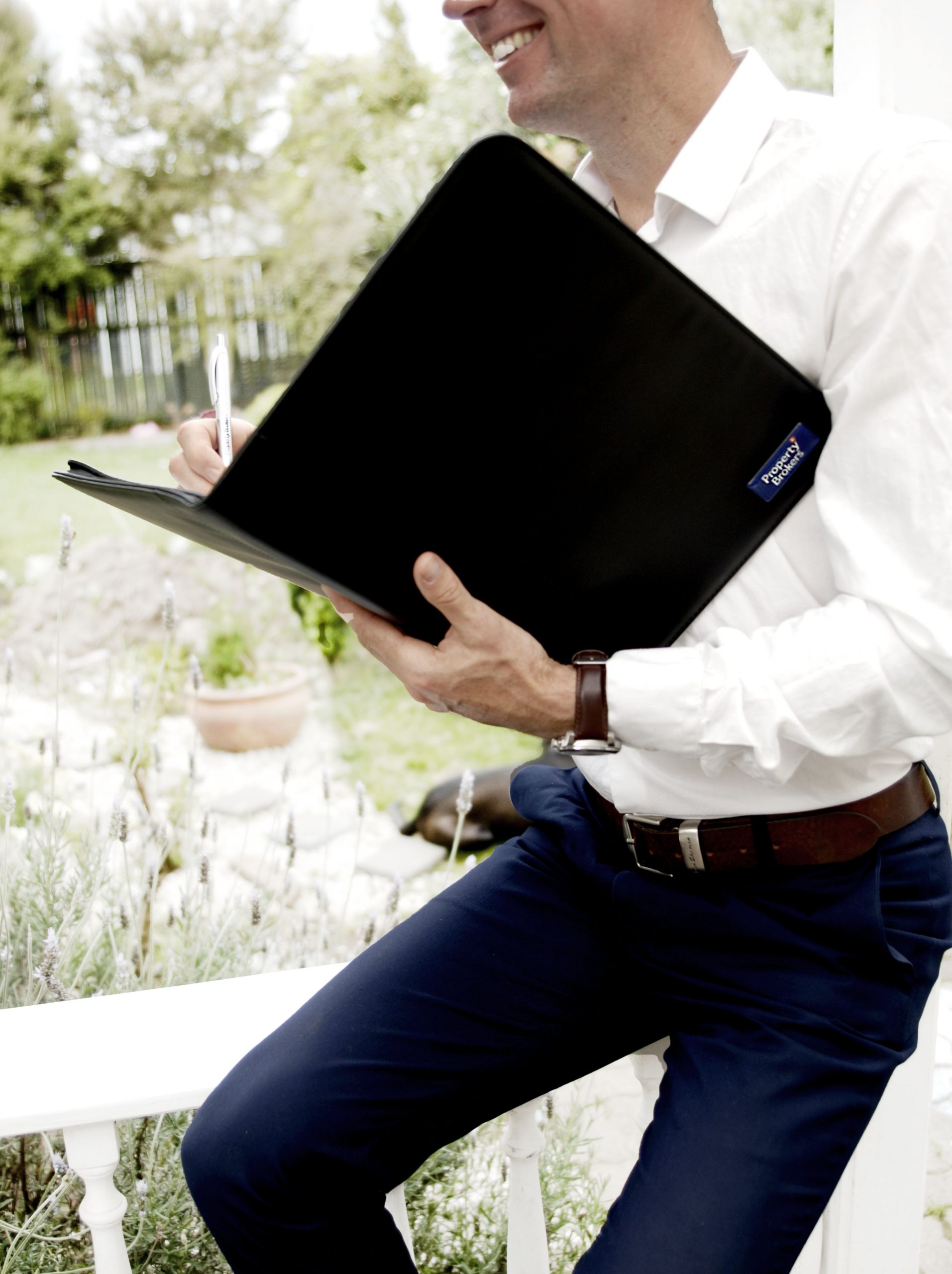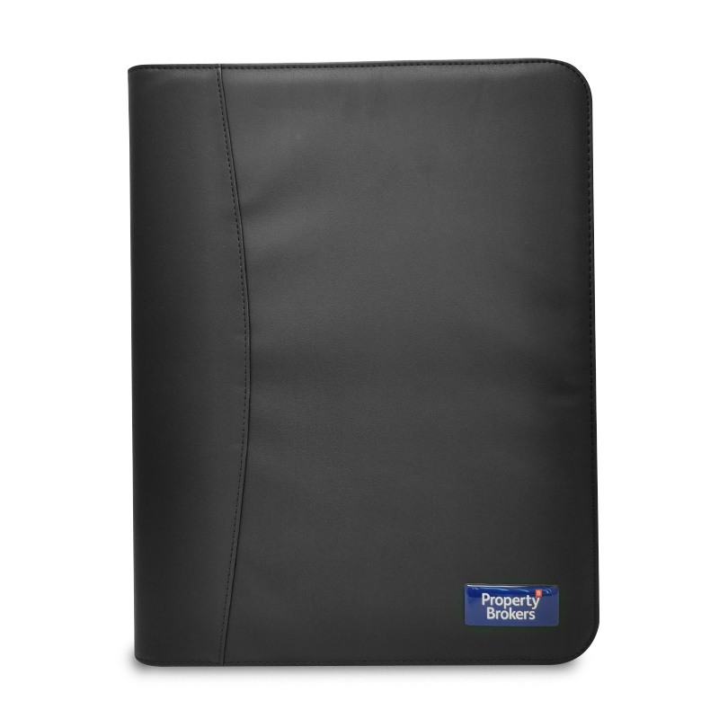Bradford Zip Portfolio with full colour Property Brokers logo. Secured Zippered closure with a lined A4 pad, several pocks & a pen loop. Compendiums are a staff charge – please provide staff member’s name(s) when ordering.