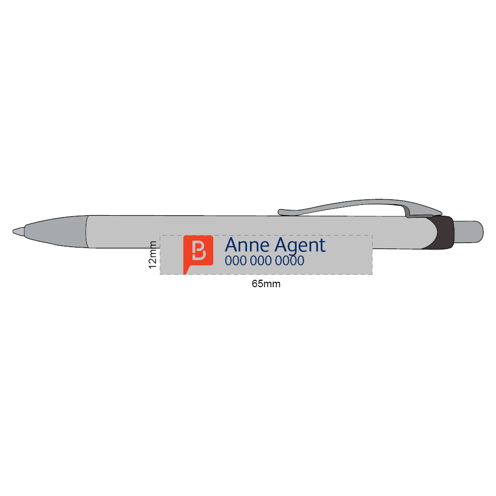 Retractable aluminum Arizona ball pen with blue ink large volume refill with 1200 meters of writing. Includes clip. Choice of one or two colour logo. MOQ 100 units. Please enter your name and telephone number in the boxes below. Boost Promotions will then send you a print proof to approve before production commences.