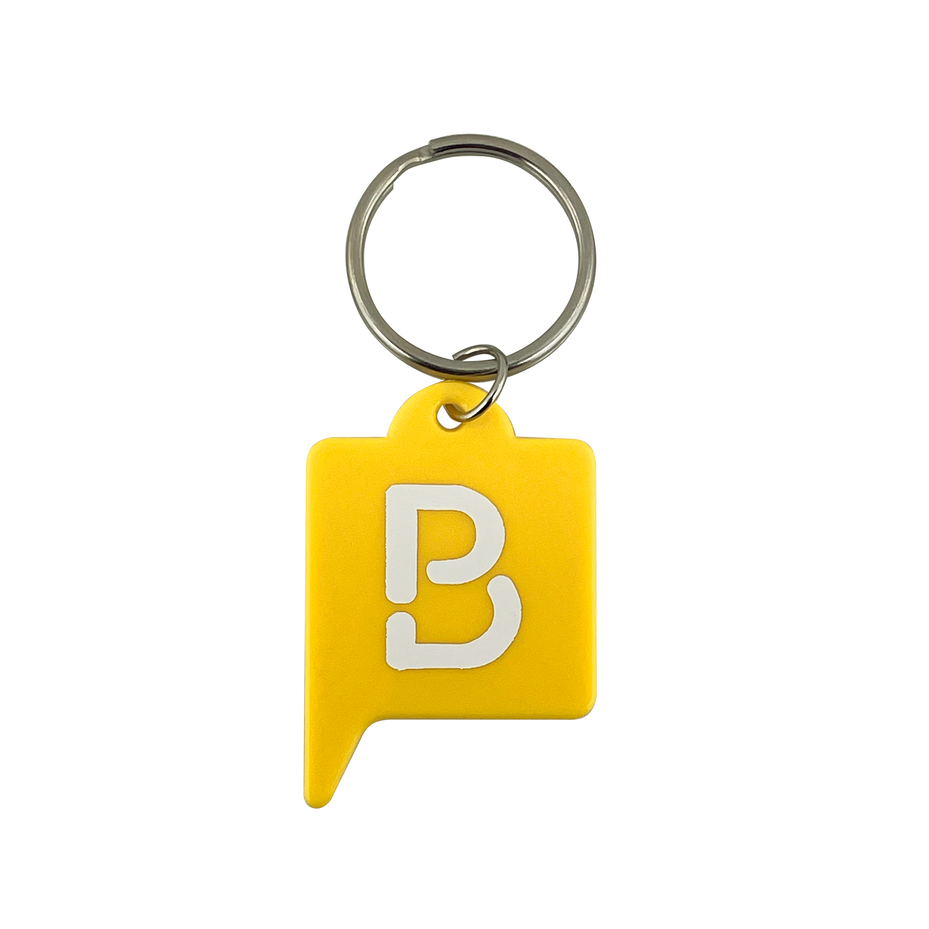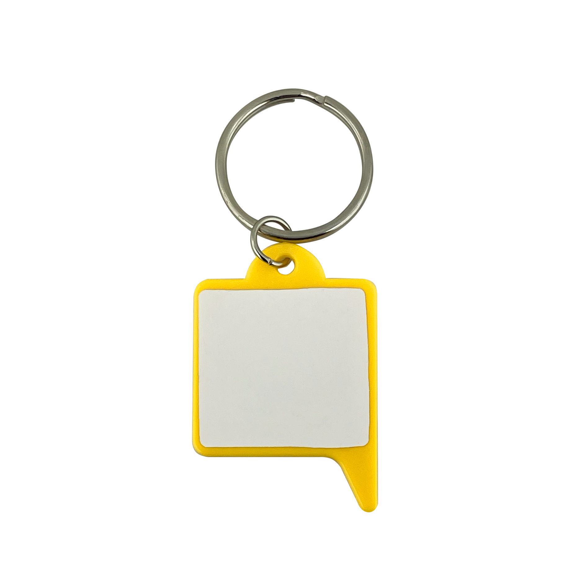 Property Brokers brand flag shaped plastic key tag with jump ring & split ring.